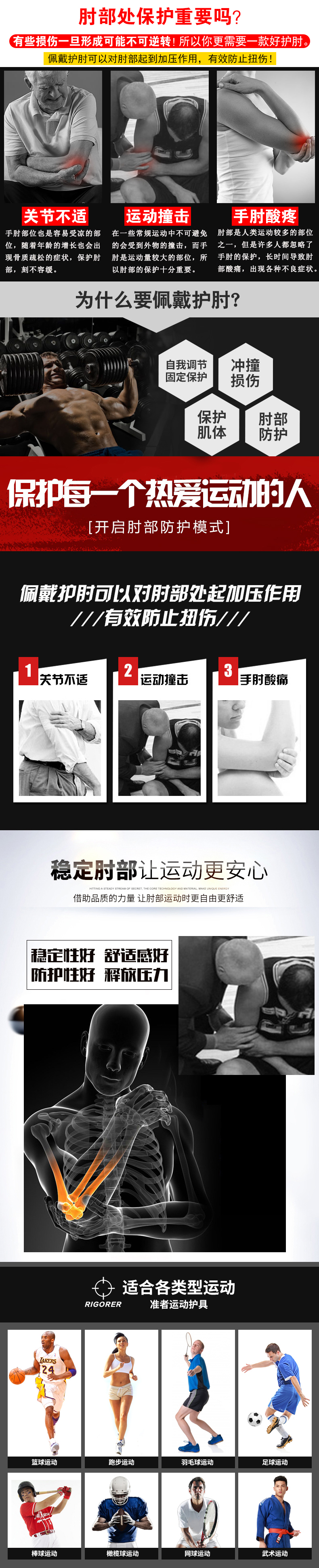 忍牌護肘穿著舒適,不易松脫滑落或起皺變硬,適合各種體育運動